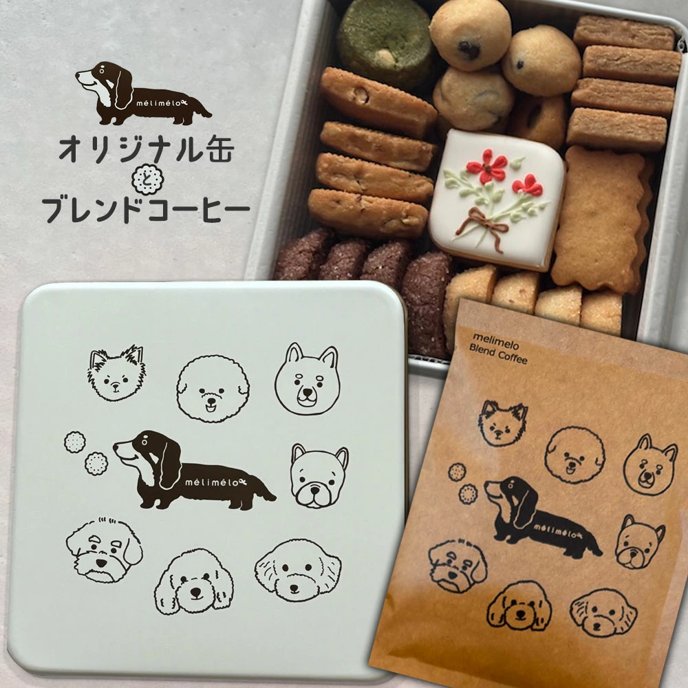アトリエメリメロ オリジナルクッキー缶(犬イラスト)&ドリップコーヒー